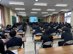 2学年では、本校社会科教室を会場に希望者対象の公務員講習会が開かれました。今年度も講師を務めていただいた学校法人北杜学園大原簿記情報公務員専門学校の佐藤弘章先生からは、公務員試験に合格するための知識だけでなく、「公務員になるにあたって今後の高校生活で意識してほしいこと」が伝えられ、生徒たちは熱心に耳を傾けていました。